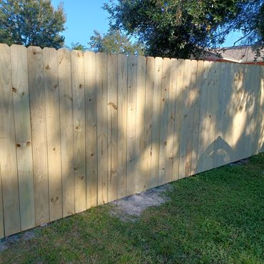 A Stockade style wood fence is built by "butting" pickets next to one another. It is the least expensive style of wood privacy fence we offer. This style provides privacy, security, and low maintenance, all at an affordable cost.